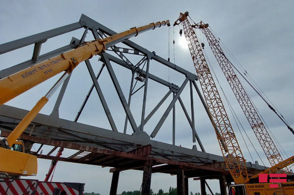 Qeyd edək ki, mürəkkəb quruluşa malik dəmir yolu körpüsünün inşasını həyata keçirmək, texnikaların işləməsi üçün müvəqqəti estakada qurulub. Körpünün tikintisinə çoxsaylı avadanlıqlar, kranlar, ağır tonnajlı avtomobillər və ixtisaslı işçi qüvvəsi cəlb olunub.