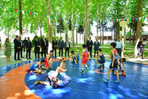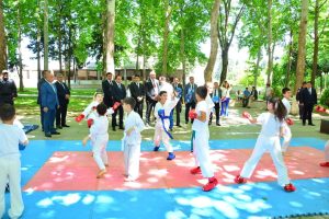Uşaq festivalının təşkil olunduğu məkan uşaqların əl işlərindən ibarət sərgi və idman zonalarına bölünüb. Burada balacaların bir-birindən maraqlı və fərqli yaradıcılıq işləri, onların təqdimatında bədii kompozisiyalar, dama, karate, güləş idman növlərindən nümunələr böyük marağa səbəb olub.