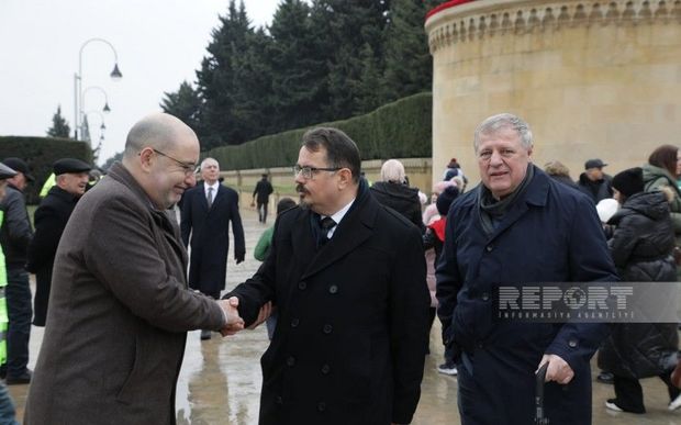 “Report”un xəbərinə görə, diplomatlar şəhidlərin xatirəsini ehtiramla anıb, məzarları önünə güllər düzüblər.