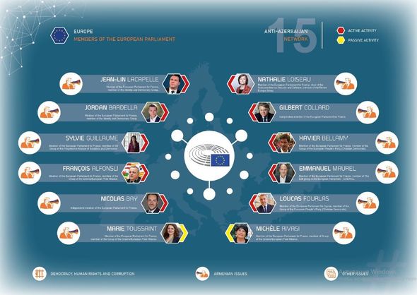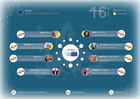 Avropa Parlamentində təmsil olunan 33 nəfərlik “Ermənistanla dostluq qrupu”nun üzvlərinin də bu şəbəkədə olduğu bildirilir. Avropa Parlamentində Azərbaycan və Türkiyəni hədəfləyən bəyanatlar AP adından elan edilsələr də, onların əksəriyyəti “33 nəfərlik qrup” tərəfindən imzalanır. Bu deputatların bir qismi Karapetyanın maliyyəsi ilə Ermənistana səfərlər ediblər.