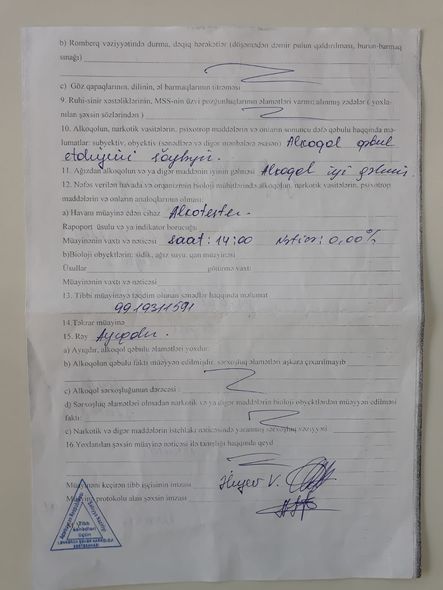 İcarəyə götürən şəxs izahatında həmin obyektin əşyalarını özü aldığını qeyd edib və alınan əşyaların qaiməsini təqdim edib. Araşdırmalar nəticəsində E.S. müraciətində hər hansı bir cinayət əməli olmadığı müəyyən olunub və buna görə də cinayət işinin başlanılması rədd edilib.