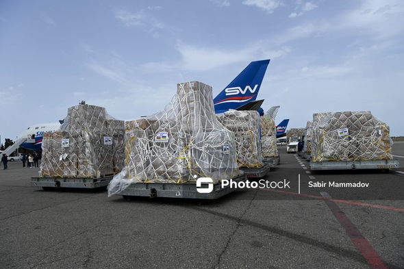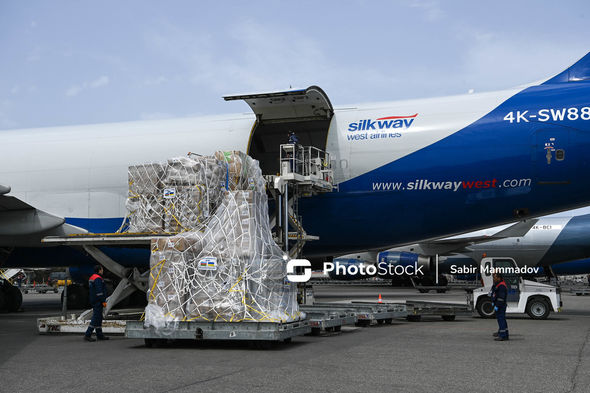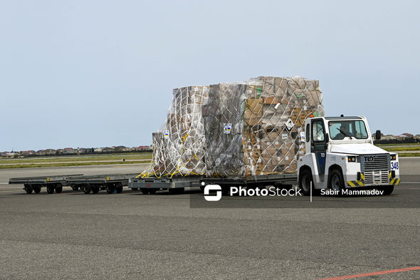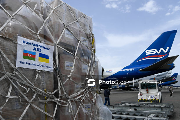 Humanitar yükü Varşava hava limanına çatdırmaq üçün ilk təyyarə 21 aprel saat 14:30-da Ukraynanın ölkəmizdəki səfirinin iştirakı ilə Heydər Əliyev adına Beynəlxalq Hava Limanından yola salınıb.