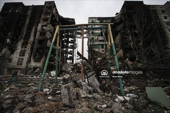 Görüntülərdə yerlə yeksan olmuş şəhərdə dağılmış, yanmış binalar, əzilmiş maşınlar, dağılmış infrastruktur və bunların fonunda uşaqlar, göz yaşlarına boğulan sakinlər əks olunub.