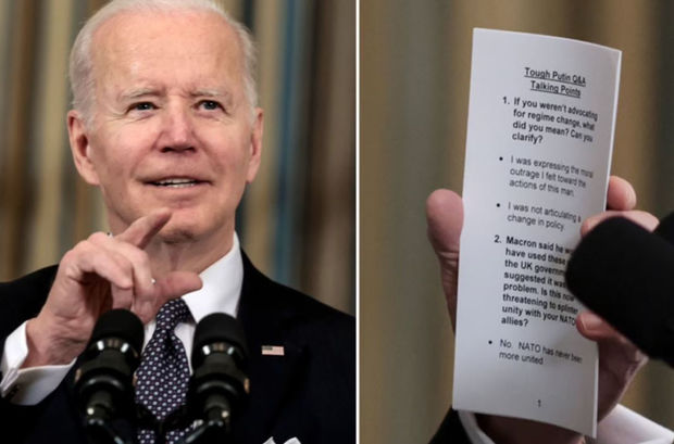 Kağızın üzərində Baydenin Putin qarşı işlətdiyi ifadələrlə bağlı izahlar və digər məsələlərlə əlaqəli şərhlər yazılıb.