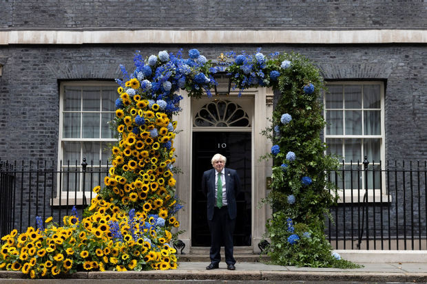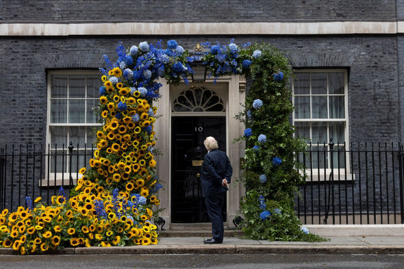 Britaniyada Ukraynanın Müstəqillik Günü münasibətilə Baş nazirin Dauninq-Strit 10 ünvanındakı iqamətgahı günəbaxanlar və mavi buketlərlə bəzədilib.