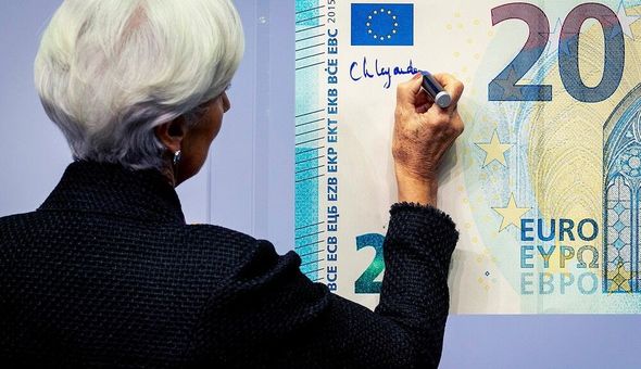 Analoji olaraq avro əsginaslarının da hər birində Avropa Mərkəzi Bankının prezidentlərinin imzası həkk olunub. Birinci seriyada – 2003-cü ilin noyabrından 2012-ci ilin martına qədər çap edilmiş əsginaslarda Avropa Mərkəzi Bankının ikinci prezidenti Jan-Klod Trişenin imzası var. 2012-ci ilin martından sonra çap edilən əsginaslarda bankın üçüncü prezidenti Mario Draqinin imzası yer alır. 2020-ci ildən etibarən isə yeni prezident Kristin Laqardın imzası tədricən dövriyyəyə daxil olan əsginaslarda görünməyə başlayıb.