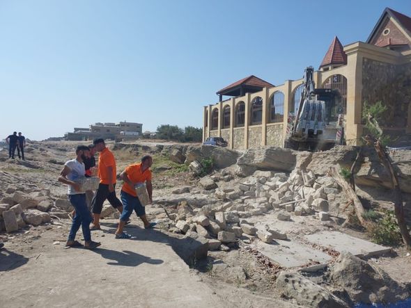 Oxu.Az xəbər verir ki, ərazidə Bakı şəhər və Xəzər Rayon İcra Hakimiyyətinin nəzarəti altında ərazidəki qanunsuz tikililərin sökülməsi prosesi sürətlə davam edir.