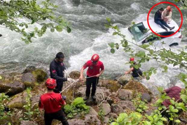 Türkiyənin Rize şəhərində avtomobil dərədən çaya aşıb.
