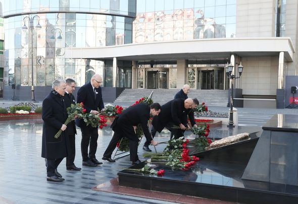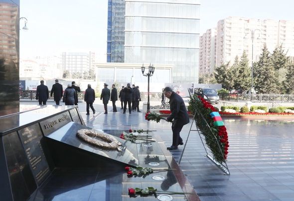 Dövlət və hökumət rəsmiləri soyqırımı abidəsinin önünə gül dəstələri düzərək, faciə qurbanlarının əziz xatirələrini ehtiramla anıblar.