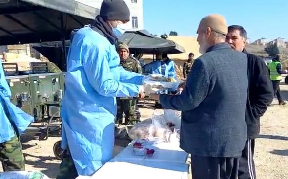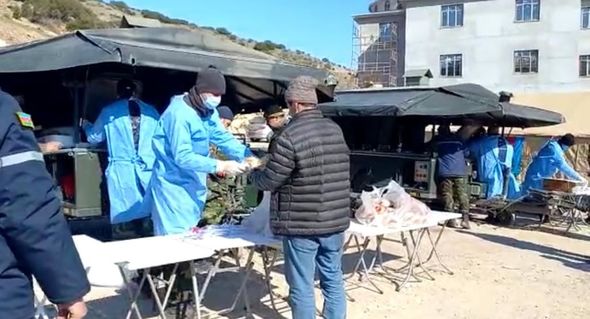 Çadırlarda yaşayan insanlar üçün lazımi şərait yaradılıb, o cümlədən mobil səhra mətbəxi qurularaq qida təminatı təşkil olunub.