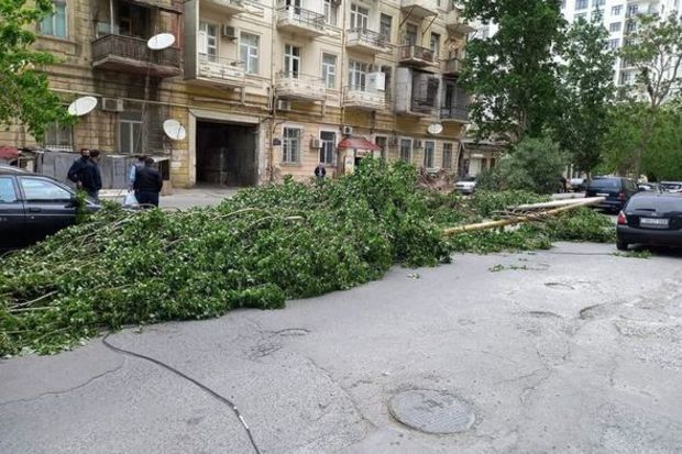 Paytaxtın müxtəlif rayonlarında güclü külək 10 ağacı aşırıb.