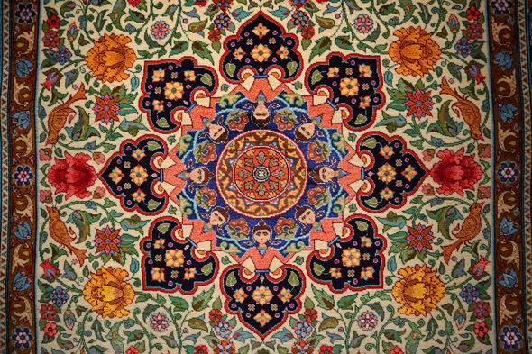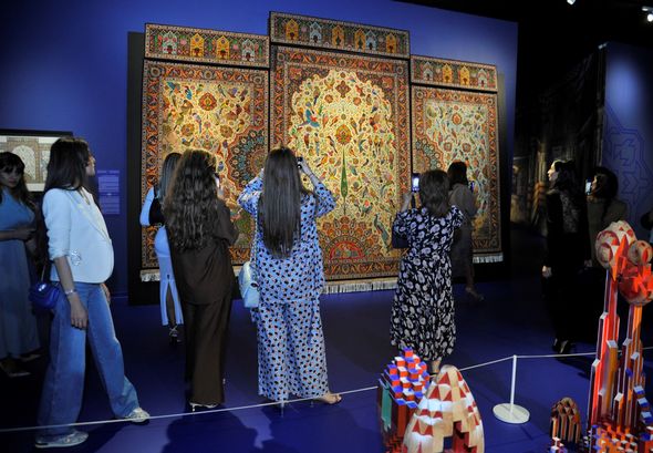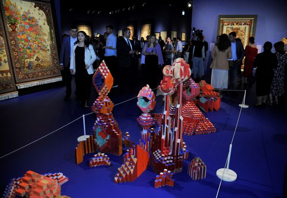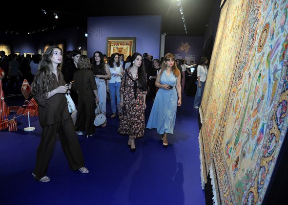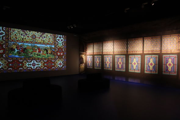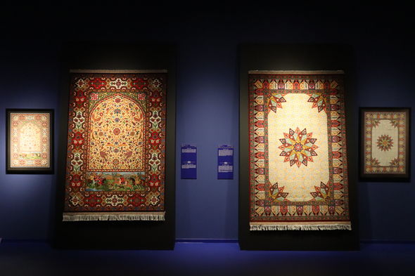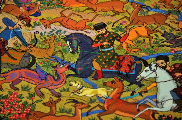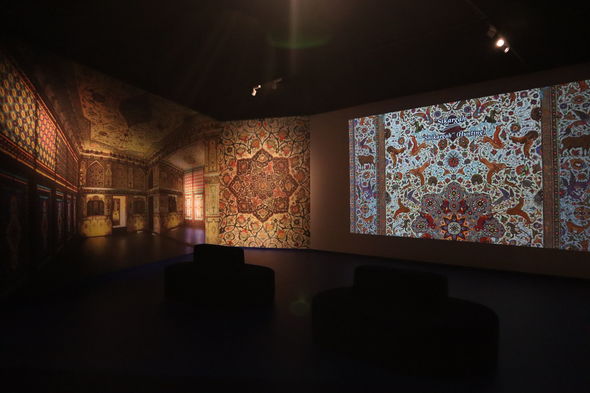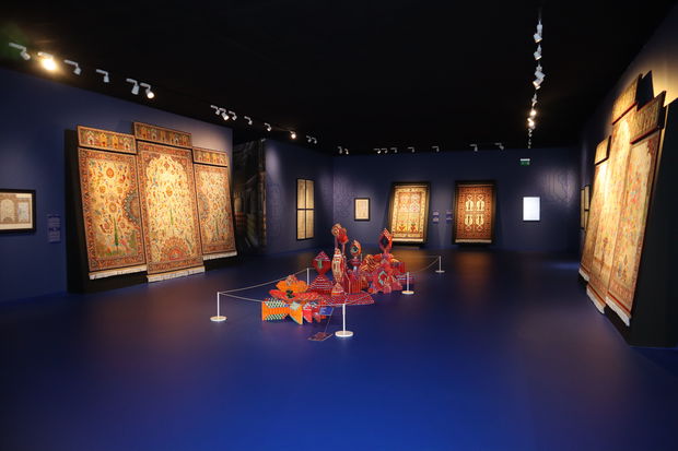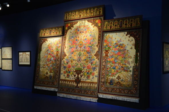Heydər Əliyev Fondunun qədim sənətə yeni nəfəs verən kolleksiyasındakı “Yaranış”, “Şikargah”, “Xan ovu”, “Cəng və barış”, “Bəndi-rumi”, “Şəbəkəli”, “Adəm və Həvva, “Ağaclı”, “Narlı“, “Göllü”, “Ləçək-turunc”, “Dörd fəsil”, “Tağlı”, “Cəmadət” xalçaları, “Cənnət quşları” və “Cənnət bağı” dəst xalı-gəbələri bənzərsiz sənət nümunələri kimi ziyarətçilərin marağına səbəb olub. Kolleksiyadakı xalçaların hər biri naxışları, ornamentləri vasitəsi ilə ziyarətçiyə öz mesajlarını çatdırır. “Yaranış” əsərində isə xammalın hazırlanmasından xalçanın tam ərsəyə gəlməsinə kimi bütün mərhələlər parlaq bədii dillə öz əksini tapıb.