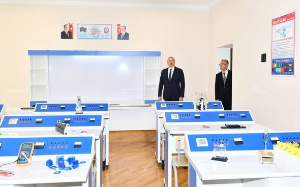 Prezident İlham Əliyev məktəbin yeni binasının çağırışa qədər hərbi hazırlıq otağında, ekosinifdə, biologiya kabinetində, informatika və rəsm otaqlarında, yeməkxanada, əmək otağında və fizika kabinetində yaradılan şəraitlə tanış olub.