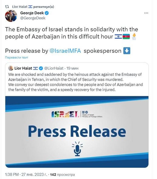 Bu barədə İran səfirliyi “Telegram”da məlumat yayıb.