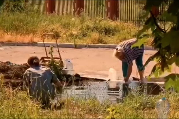 Mariupolda insanlar texniki suyu küçələrdəki gölməçələrdən götürməli olurlar.