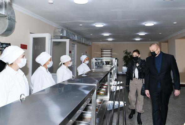 Dövlətimizin başçısı və Birinci vitse-prezident hərbi hissənin əsgər yeməkxanasında yaradılan şəraitlə tanış oldular.