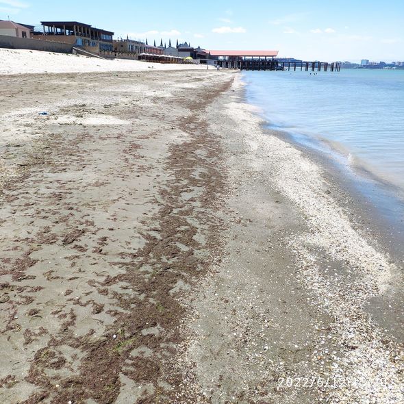 Novxanı çimərliyində qum yoxa çıxır, dəniz suyu çəkilir, sahili böcəklər basıb.