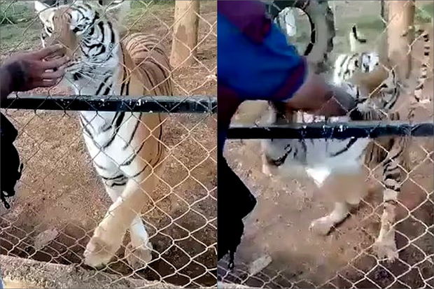 Zoopark işçisinin benqal pələngini sığallamaq istəyi onun üçün faciə ilə bitib.