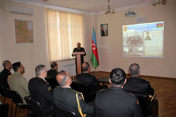 Bildirilib ki, qonaqlara hərbi təhsil müəssisəsinin yaranma tarixi, əsas fəaliyyət istiqaməti və tədris prosesi barədə brifinq təqdim edilib.
