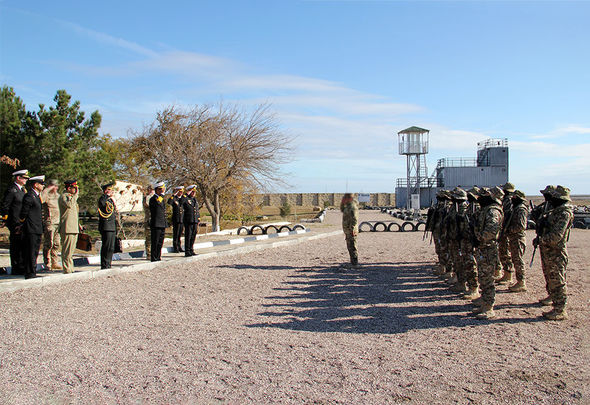 Sonda hərbi hissənin ərazisindəki təlim poliqonunda sualtı hücum və sualtı müdafiə bölmələrinin dalğıclarının nümunəvi çıxışları nümayiş etdirilib.