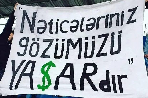 Göründüyü kimi, onsuz da Azərbaycanda ölmək üzrə olan futbolun bəzəyi olan azsaylı azarkeşlər heç bir siyasi məna kəsb etməyən adi bir pankarta görə cərimələnirsə, biz həmin azarkeşləri futboldan küsdürürüksə, o zaman necə futbolumuz üçün arenalara toplaşanlar olsun ki?!
