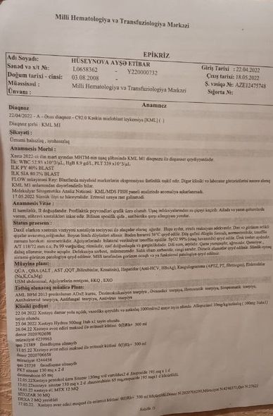 Qan xərçəngindən əziyyət çəkən 14 yaşlı Ayşənin yaşaması üçün təcili əməliyyata ehtiyacı var.