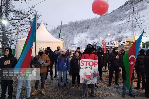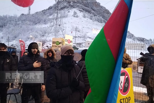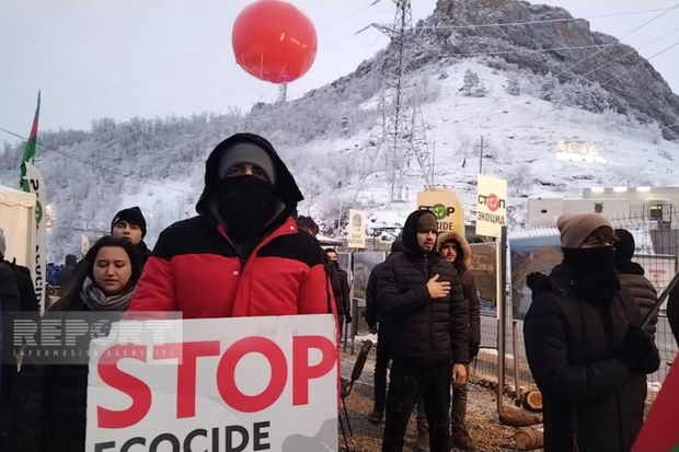 Hazırda havanın qarlı və şaxtalı olmasına baxmayaraq, ekofəallar yolun hər iki tərəfində, hərəkətə maneə törətmədən üzərində Azərbaycan, rus və ingilis dillərində yazılmış plakatlar qaldırıb, şüarlar səsləndirirlər.