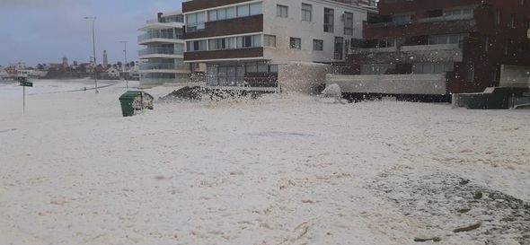 Uruqvayda “Yakekan” qasırğası zamanı qeyri-adi təbiət hadisəsi lentə alınıb. Belə ki, Punta del Este şəhərinin Atlantik sahilləri dəniz köpüyü ilə dolub-daşıb.