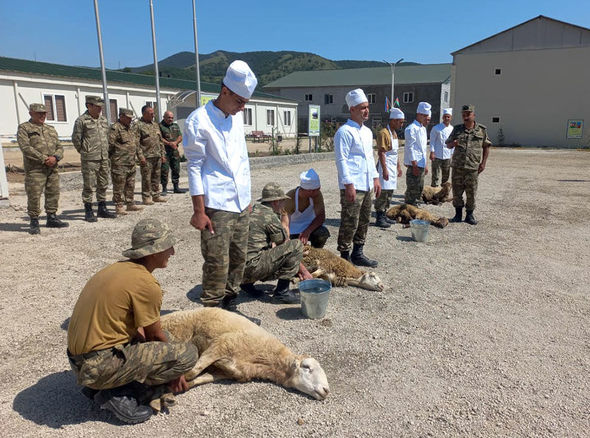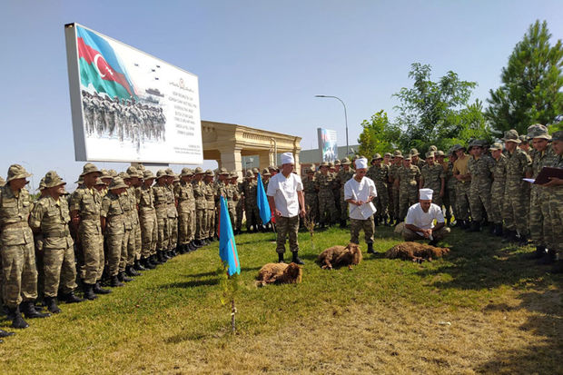 Hərbi qulluqçuların iştirakı ilə qurbanlıqlar kəsilib, onlar üçün bayram süfrələri təşkil edilib.