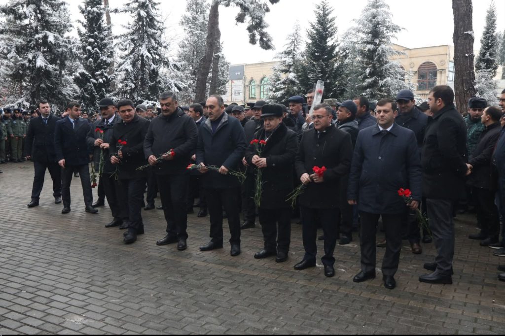 Şəmkir Rayon İcra Hakimiyyətinin, hüquq-mühafizə orqanlarının, idarə, müəssisə və təşkilat rəhbərləri, o cümlədən rayon ictimaiyyəti əvvəlcə Şəmkir şəhərində yerləşən 20 Yanvar qurbanlarının xatirəsinə ucaldılmış abidə önünə gül dəstəsi qoydular.