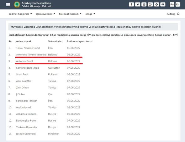 Qeyd edək ki, eyni zamanda “Sputnik Azərbaycan”ın mətbuat mərkəzinin prodüseri və V.Triznonun həyat yoldaşı olan Anton Pavlovun icazəsinin də vaxtı uzadılmayıb.