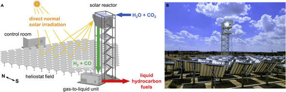 Bunun üçün mütəxəssislər Günəş enerjisi istehlak edən qüllə layihəsi hazırlayıblar. Bu dizayn qalıq yanacaqları əvəz etmək üçün sintetik yanacaq istehsal etməyə qadirdir. Bunun üçün oraya su və karbon qazı əlavə etmək lazımdır; hasilat digər sahələrlə yanaşı, aviasiya sənayesində də istifadə oluna bilən kerosinin analoqudur. Eyni zamanda, buraxılan karbon qazının miqdarı qüllədə yanacaq hasil etmək üçün lazım olan miqdara bərabərdir ki, bu da onu karbon-neytral edir.