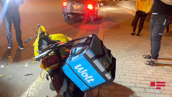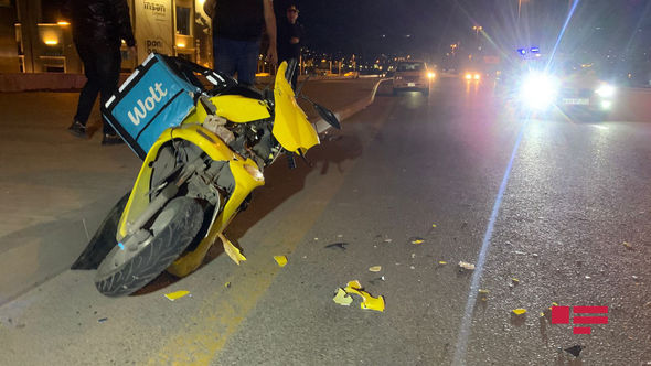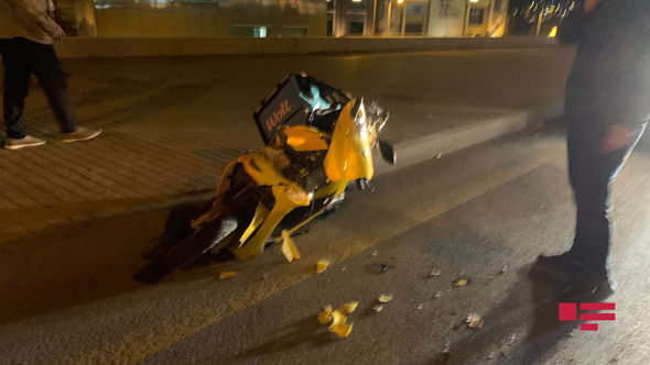 Mopedi idarə edən şəxs yüksək sürətlə “Porsche” markalı maşına çırpılıb.
