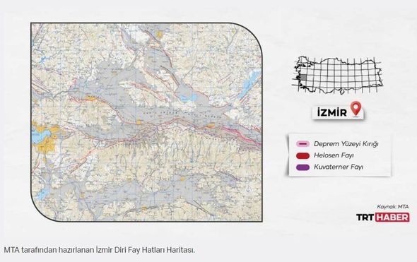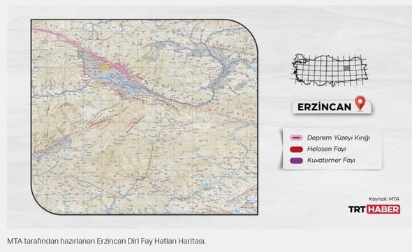 MTA tərəfindən hazırlanan Türkiyənin Aktiv Qırılma Xətləri Xəritəsində əks olunan ərazilər isə Aksaray, Aydın, Balıkesir, Bolu, Burdur, Bursa, Bingöl, Denizli, Eskişehir, Erzincan, Erzurum, Hakkari, Hatay, İzmir, Kahramanmaraş, Manisa, Muğla , Kocaeli, Konya, Osmaniye, Sakarya və Tokatdır. Bundan əlavə, bir çox rayonlar da bu xətlər üzərində yerləşir.