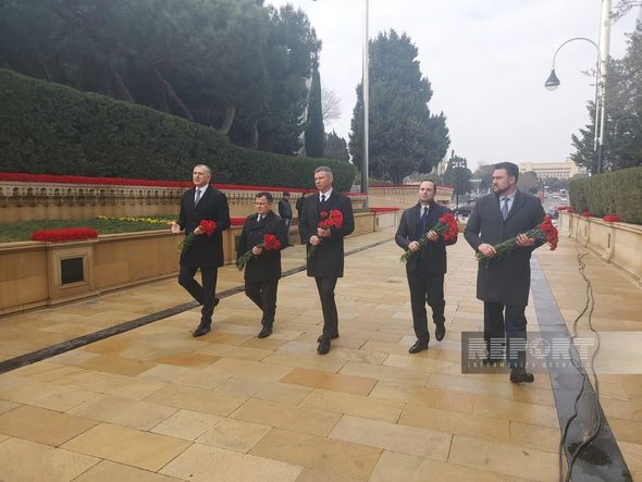 “Report”un xəbərinə görə, diplomatlar şəhidlərin xatirəsini ehtiramla anıb, məzarları önünə güllər düzüblər.