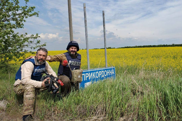 Jurnalist işğaldan azad edilən yaşayış məntəqəsinin girəcəyindən və Ukrayna hərbçiləri ilə çəkdirdiyi fotoları da paylaşıb.