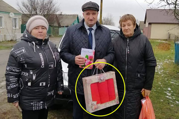 Paylaşımda yerləşdirilmiş şəkillərdə anaların rayon rəhbərindən aldıqları hədiyyələr – dəsmal dəstləri və açıqcalar əks olunub.