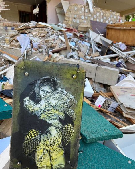 Daha bir məşhur küçə rəssamı Ukrayna müharibəsini dünyaya çatdırmaq üçün aksiya keçirib. Belə ki, “C215” kimi tanınan Parisli küçə rəssamı Kristian Gemi Buça, Qostomel və Kiyevdə dağıdılmış binaların üzərində çoxlu qraffitilər yaradıb.