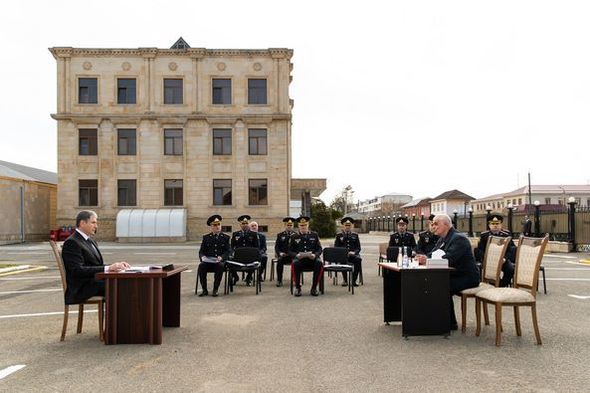 Oxu.Az xəbər verir ki, general-polkovnik V.Eyvazov Lənkəran Şəhər Rayon Polis Şöbəsində bölgə üzrə polis orqanlarında vakant olan sıravi və kiçik rəis heyəti vəzifələrinə xidmətə qəbulla bağlı sıra baxışı keçirib.