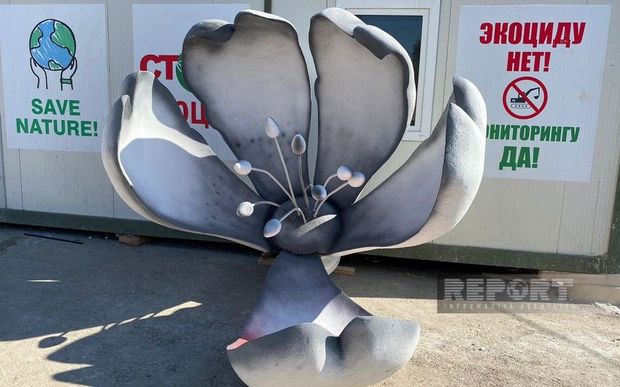 “Report”un aksiya keçirilən ərazidəki əməkdaşı xəbər verir ki, kompozisiyada badam çiçəyinin bir ləçəyinin düşdüyü və birinin isə üzərinə qan töküldüyü əks olunub.