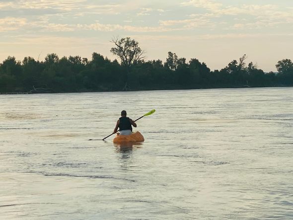 O, təxminən 400 kq ağırlığında nəhəng balqabağın içində Missuri çayı boyunca üzüb. Məlumata görə, avarlı “qayıq”la yerli vaxtla səhər saat 7:30 radələrində başlayan 61 kilometrlik səyahət axşam saat 18:30 radələrində başa çatıb.